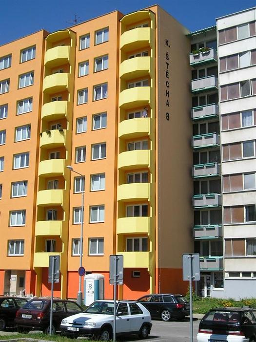 Vyměnili jsme nové betonové lodžie za původní ocelové balkony v bytovém panelovém domě na ulici K.Stecha 8. Výměna lodžií byla provedena v roce 2013 jako součást revitalizace domu.