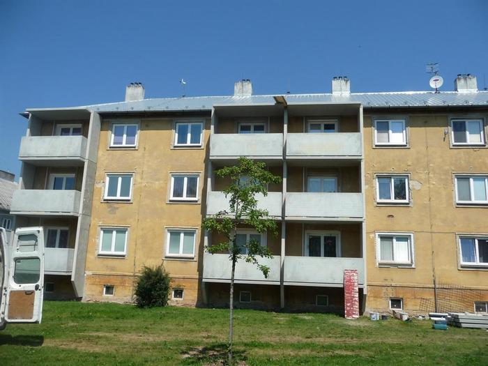 Kompletní rekonstrukce cihlového domu včetně výměny oken, dveří a také výměny původních balkonů za nové betonové lodžie s rovnou podestou. Rekonstrukce provedena v roce 2012.